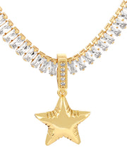 Fashion Golden 1 Copper Paved Zirconia Pentagram Pendant Necklace