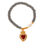 Fashion Golden 2 Copper Inlaid Zircon Irregular Oil Drop Love Pendant Beaded Pearl Bracelet