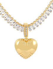 Fashion Golden 2 Copper Paved Zirconia Heart Pendant Necklace