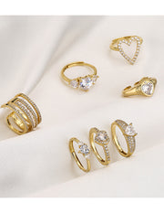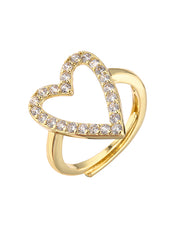 Fashion Golden Trumpet Heart Brass Zirconium Heart Open Ring