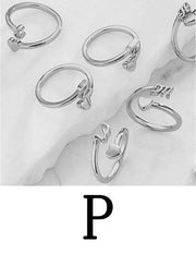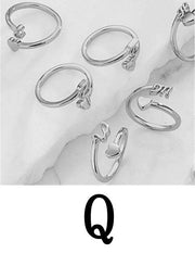 Fashion Platinum A Copper Gold Plated Heart 26 Letter Open Ring