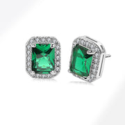 Fashion Platinum (large Green Diamond) Copper Diamond Square Earrings