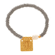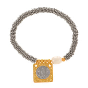 Fashion Silver 2 Copper Square Figure Beaded Pendant Pearl Bracelet
