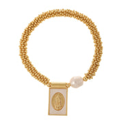 Gold 1 Copper Gold-plated Pearl Letter Heart Square Pendant Mesh Chain Bracelet (4mm)