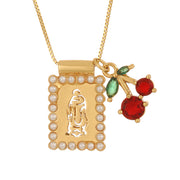 Gold 1 Square Hollow Pattern Oil-dripping Cherry Necklace (with Needle)