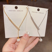 Gold-colored Y-shaped Pearl Tassel Necklace (thickened With Real Gold Plating) Copper Y-shaped Pearl Tassel Necklace