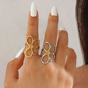Gold Openwork Petal Ring Stainless Steel Flower Ring
