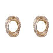 Gold-plated Full-diamond Irregular Oval Earrings (thickened With Real Gold Plating) Brass Full-diamond Irregular Oval Stud Earrings