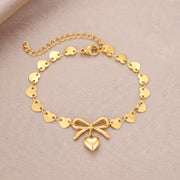 Gold Stainless Steel Heart Bow Bracelet