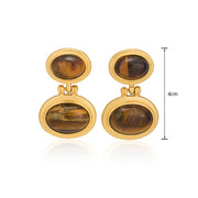 Gold Titanium Steel Tiger Eye Earrings