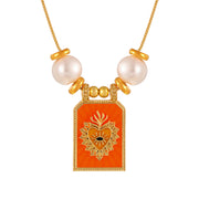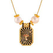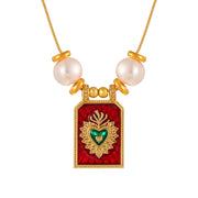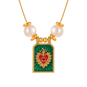 Green Square Oil-drop Heart Freshwater Pearl Necklace