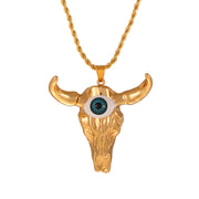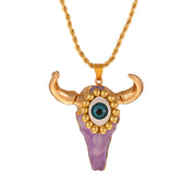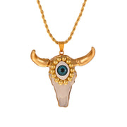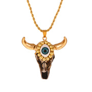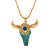 Lake Green Beaded Eye Bull Head Twist Necklace