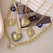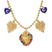 Light Blue Rice Bead Heart Copper Bead Necklace (4mm)