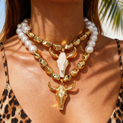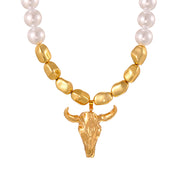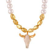 Milky Alloy Bull Head Imitation Pearl Necklace