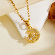 Necklace #1 304 Stainless Steel Diamond-set Moon Necklace