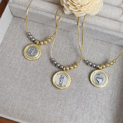 Necklace 2# Gold-plated Copper Beaded Necklace With The Image Of The Virgin Mary
