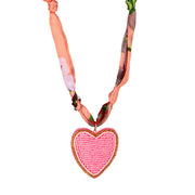 Pink Rice Bead Heart-shaped Non-woven Printed Fabric Necklace