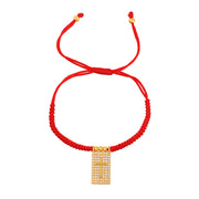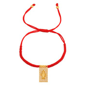 Red 1 Copper Inlaid Zircon Square Portrait Beaded Braided Bracelet