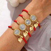 Red 1 Double-sided Round Human Figure Heart Braided Bracelet