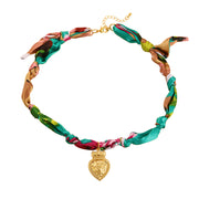 Red Copper Oil Drop Heart Series Printed Fabric Necklace