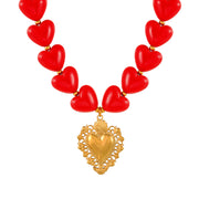 Red Titanium Steel Heart Resin Beaded Necklace