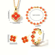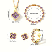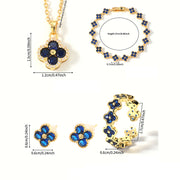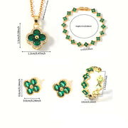 Set 1# Copper And Diamond-encrusted Four-leaf Clover Necklace Bracelet Ring And Earring Set