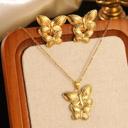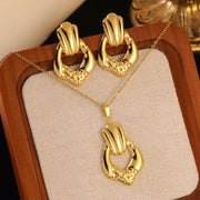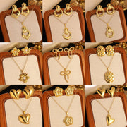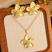 Set 1# Stainless Steel Flower Necklace Earring Set