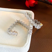 Silver (thickened With Real Gold Plating) Brass And Diamond-encrusted Triangular Earrings