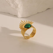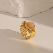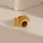 Tiger's Eye Stainless Steel Natural Stone Scalloped Round Ring