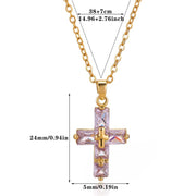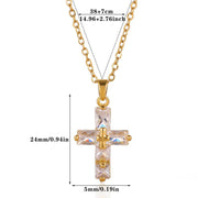 White 304 Stainless Steel Diamond-set Cross Necklace