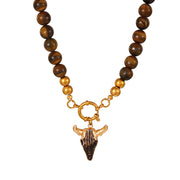 White + Gold Bull Head Titanium Steel Ring Buckle Natural Stone Bead Necklace