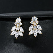White Gold Copper Leaf Earrings With Diamonds