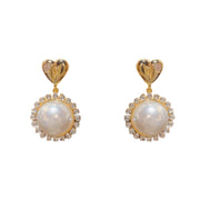 White Metallic Heart-shaped Pearl Hoop Earrings With Full Diamonds (thickened With Real Gold Plating) Metal Heart-shaped Pearl Hoop Earrings